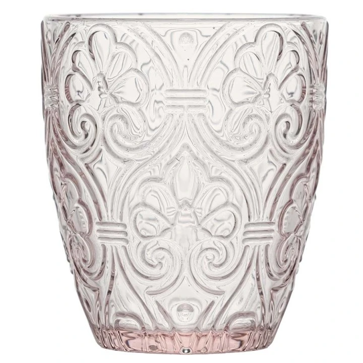 Set 6 Bicchieri in vetro decorato, colore rosa, linea Corinto Fade Maison