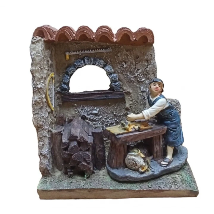 Ambientazione per Presepe Bottega Falegname in resina colorata con dettagli