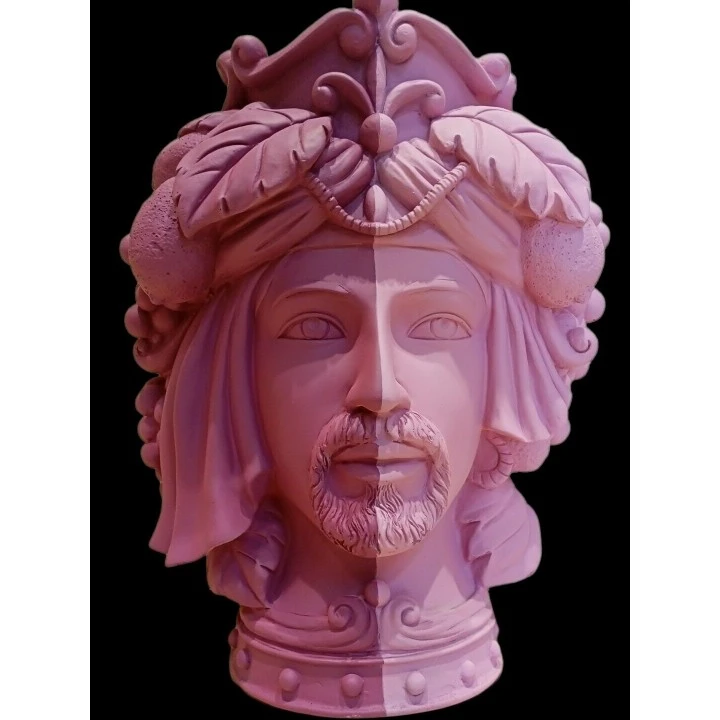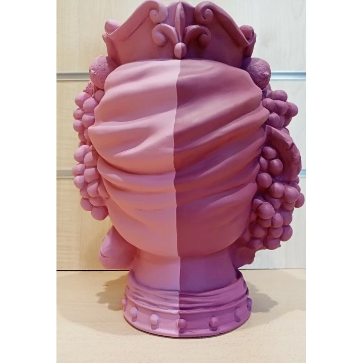 Vaso testa uomo bi-colore, rosa/bordeaux, collezione Teste Matte