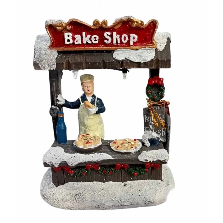 Bancarella per Villaggio Natalizio in resina con luci led colorati,