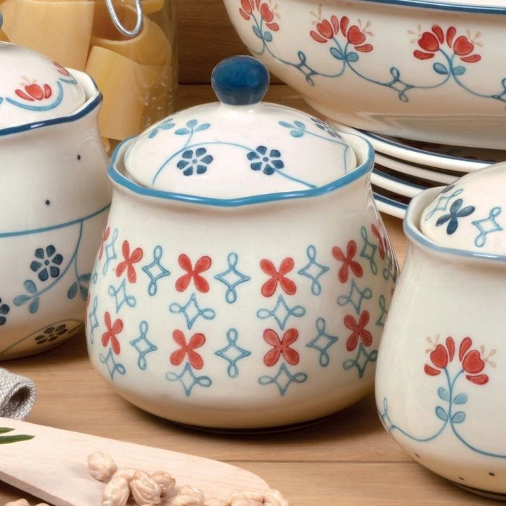 decorati a mano: gli articoli in ceramica Kergrès® della linea “Casabella” vengono decorati con 3 tecniche pittoriche: il pennello, gli stampini e il rilievo