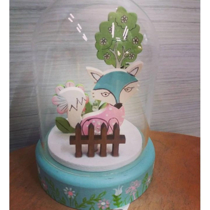 Teca in vetro luminosa con volpe e paesaggio primaverile in legno decorato con colori pastelli (marca EDG)