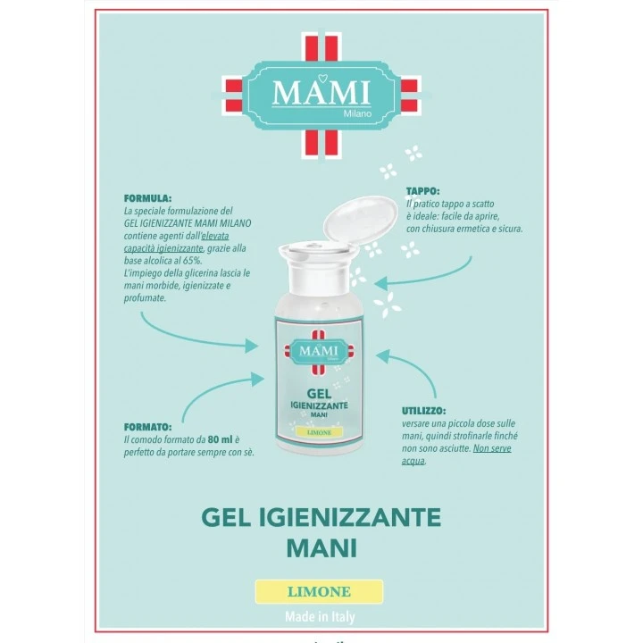 Il Gel igienizzante mani Mami ha un’elevata capacità igienizzante grazie alla base alcolica al 65%, grazie all’impiego della glicerina lascia le mani morbide, igienizzate e profumate. Fragranza Limone