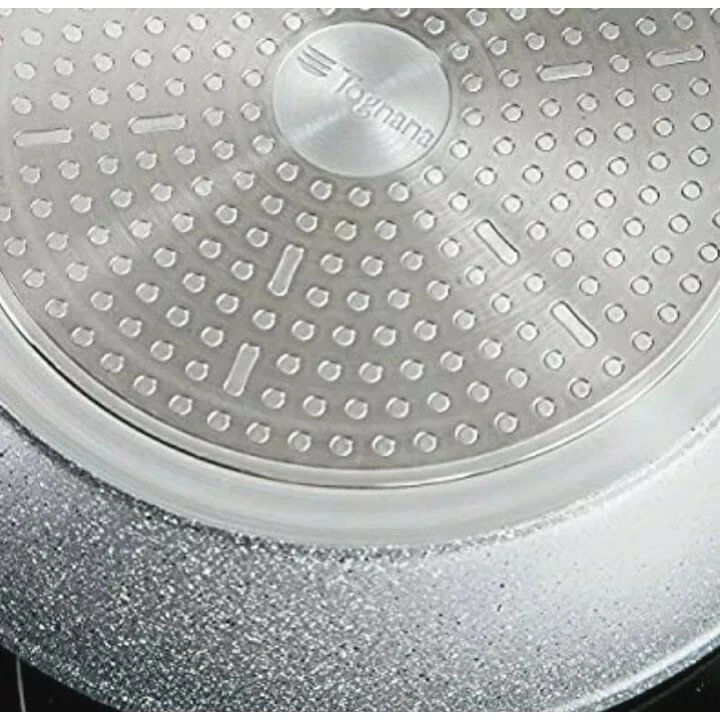 Le padelle della linea Mythos Tognana hanno un corpo in alluminio forgiato e un rivestimento interno 4 strati antiaderente dall’ innovativa tecnologia Floatech, che garantisce una cucina naturale e sana, mantenendo le caratteristiche e i valori nutrizionali e organolettici degli alimenti.