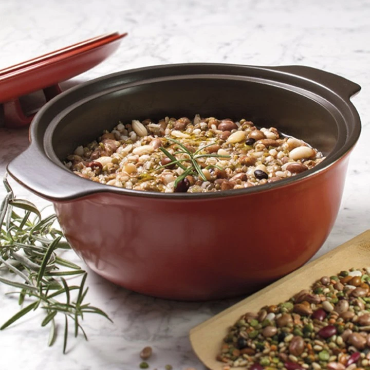materiale: Terra Sana, argilla da fiamma di alta qualità cotta ad elevata temperatura. Sistema di cottura salutare: solo componenti naturali di alta qualità per un prodotto sicuro che non contiene cadmio, piombo o nickel*; WALD® ha trasformato la caratteristica delle terre da fiamma comuni realizzando un’argilla che ha risultati eccellenti sul fuoco e non assorbe odori ne liquidi. Le pentole sono subito pronte per essere usate, dopo il lavaggio, anche in lavastoviglie. Una cottura naturale e sana per il benessere quotidiano che considera anche le nuove tendenze culinarie. Il calore si distribuisce in maniera omogenea e il vapore che si genera con ciclo continuo all’interno della pentola crea un giusto grado di umidità, cuocendo ogni cibo dolcemente, conservando intatto il sapore e l’aroma naturale degli alimenti