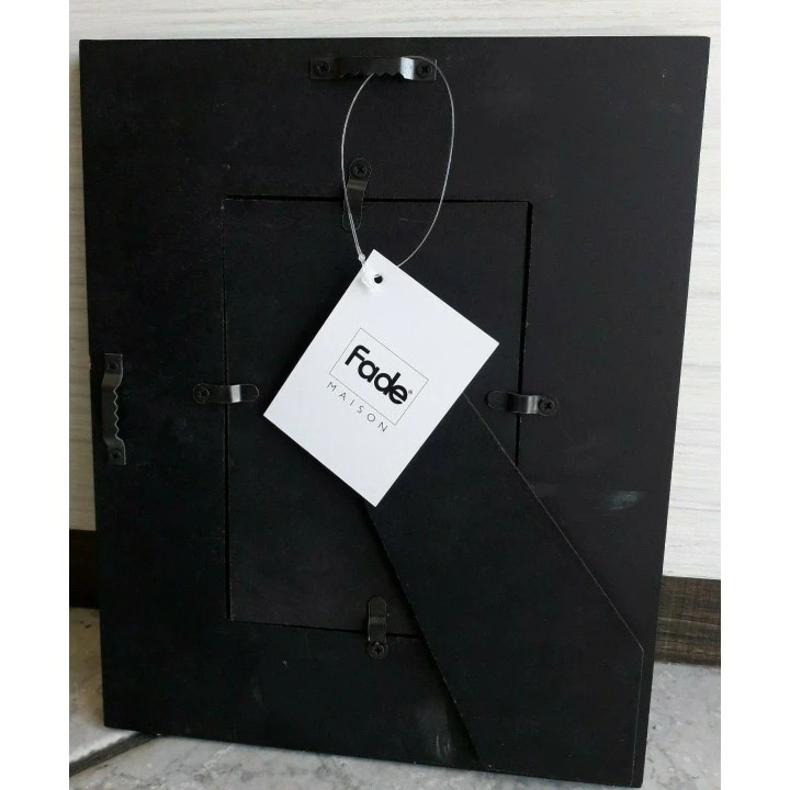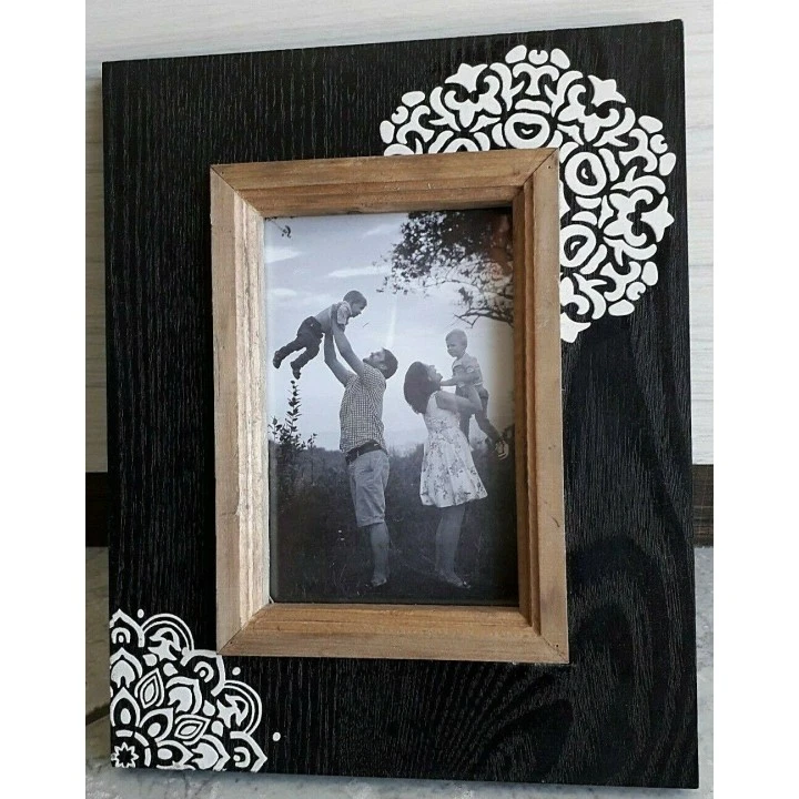 Portafoto decorato in legno nero con decoro bianco