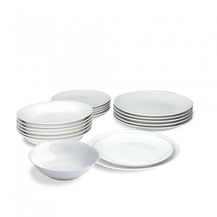 Forme essenziali che esaltano la purezza della porcellana bianca, ideale per una tavola da tutti i giorni