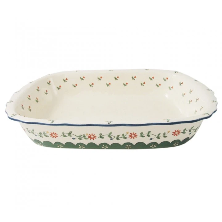 MATERIALE: ceramica Kergrès® decorata a mano sottosmalto. Gli articoli in ceramica Kergrès® della linea “Felice Nostalgia”, vengono decorati con 3 tecniche pittoriche: il pennello, gli stampini e il rilievo. La decorazione a rilievo è ottenuta con l’ingobbio, un colore con una forte componente di argilla che, essendo plastica e consistente, gli conferisce questo particolare effetto. Si stende sull’oggetto solo a mano, con appositi strumenti, proprio perché i colori sono molto densi