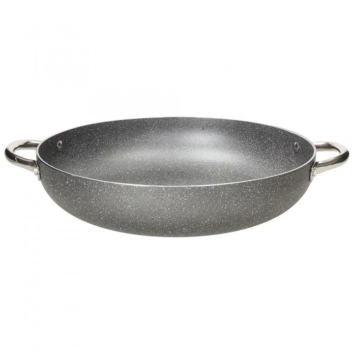 Il tegame a 2 manici Big Family misura 36 cm di diametro e 8,2 cm di altezza. Del marchio Tognana questo tegame di colore grigio è adatto per cucinare sughi, carne, pesce, verdure stufate e contorni di vario genere. Raffinato e di design, il tegame Big Family ha un corpo in alluminio stampato con un rivestimento interno antiaderente rinforzato a 4 strati, e un manigliame ergonomico e professionale in acciaio inox che gli conferisce stile ed eleganza. Adatto a tutti i piani di cottura, compresa l’induzione, grazie al fondo ad alto spessore, questo tegame è resistente e di alta qualità, oltre che Nickel e Pfoa free