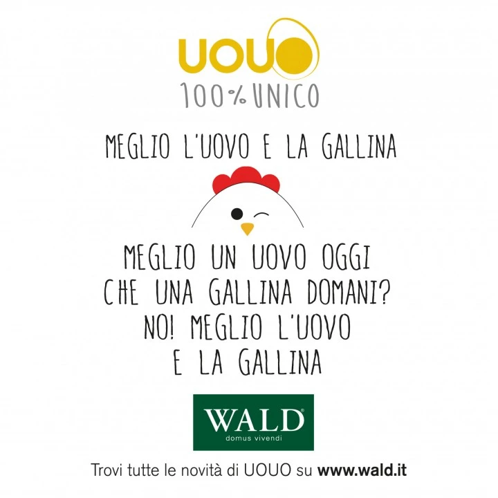 Novità Wald “UOUO”, modello Gallina con scatola regalo in cartoncino e bigliettino con frase spiritosa all’interno. Un simpatico modo di fare gli Auguri!